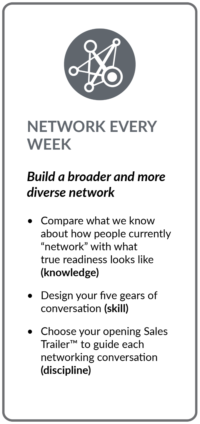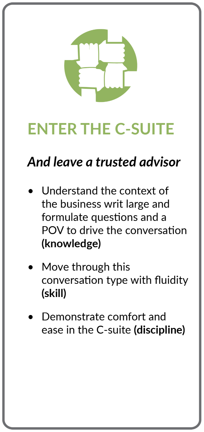 Traditional sales “training” is transactional. We might learn a proprietary methodology and a few generic tactics, but sales is a way of BEING. It’s a change of mindset AND behavior, and this takes education, not training. We deliver comprehensive education in the mindset and the 100’s of essential skills and disciplines that separate elite sellers from the rest. These are the critical competencies rarely taught in traditional sales training, in undergrad or in our companies. These are the skills and disciplines you need but never learned. The landscape of business is evolving rapidly, and those who master sales today will: