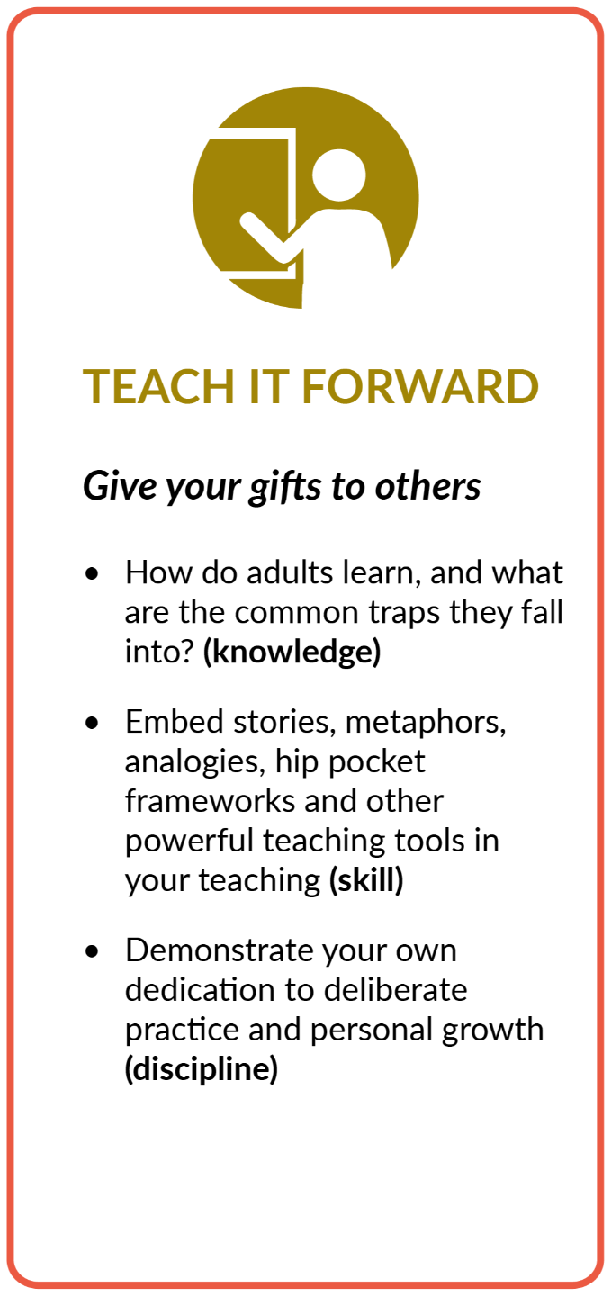 Practice what you learn to inspire action, drive success, and help others make meaningful progress